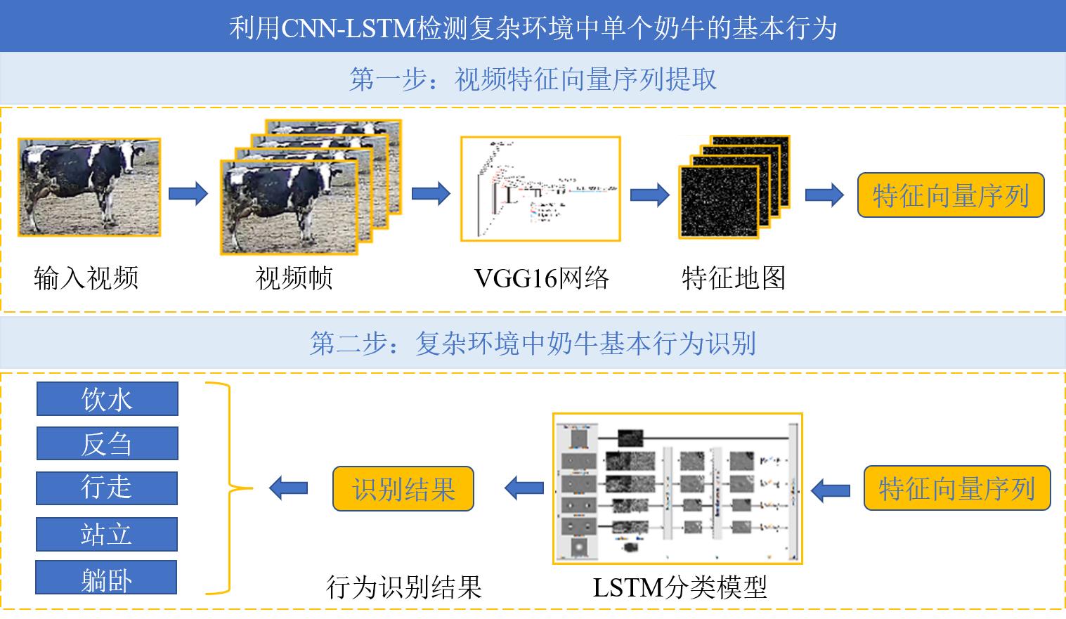 | —— | 融合卷积神经网络和长短期记忆网络 | 躺卧、站立、行走、饮水、反刍 | 97.60% | Wu等[ | 2021 | |