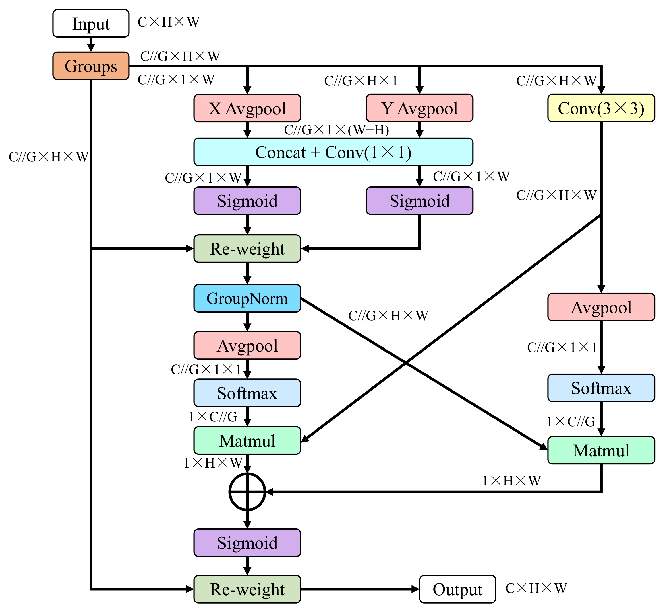 OUYANG D L, HE S, ZHANG G Z, et al. Efficient multi-scale attention module with cross-spatial learning[C]// ICASSP 2023 - 2023 IEEE International Conference on Acoustics, Speech and Signal Processing (ICASSP). Piscataway, New Jersey, USA: IEEE, 2023: 1-5.