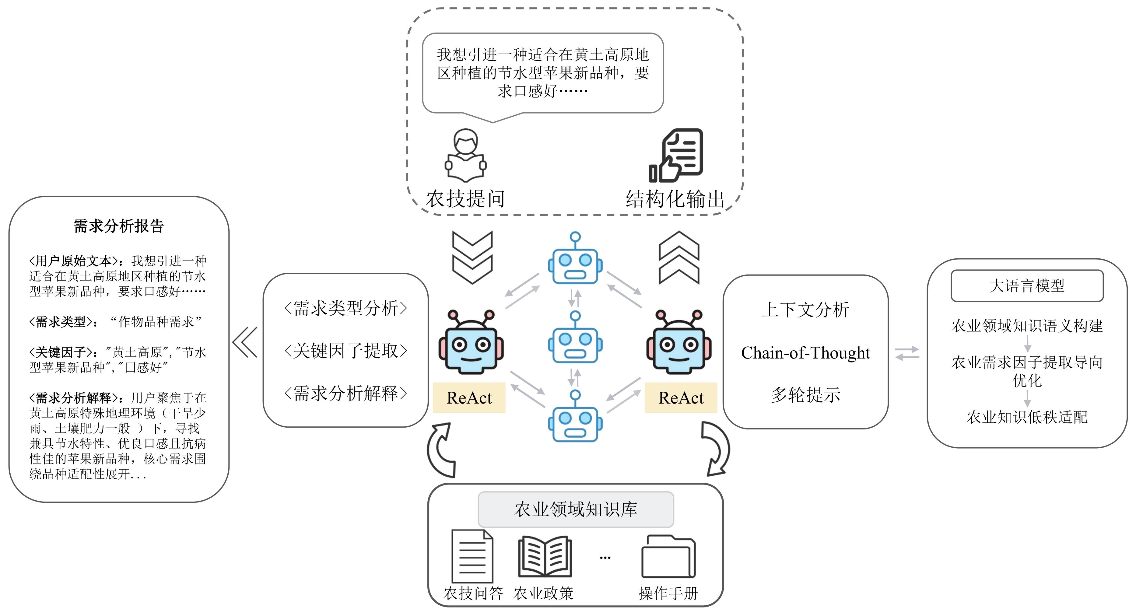 关键词: 农业需求分析, 多智能体, 大语言模型, 关键因子提取, 领域微调