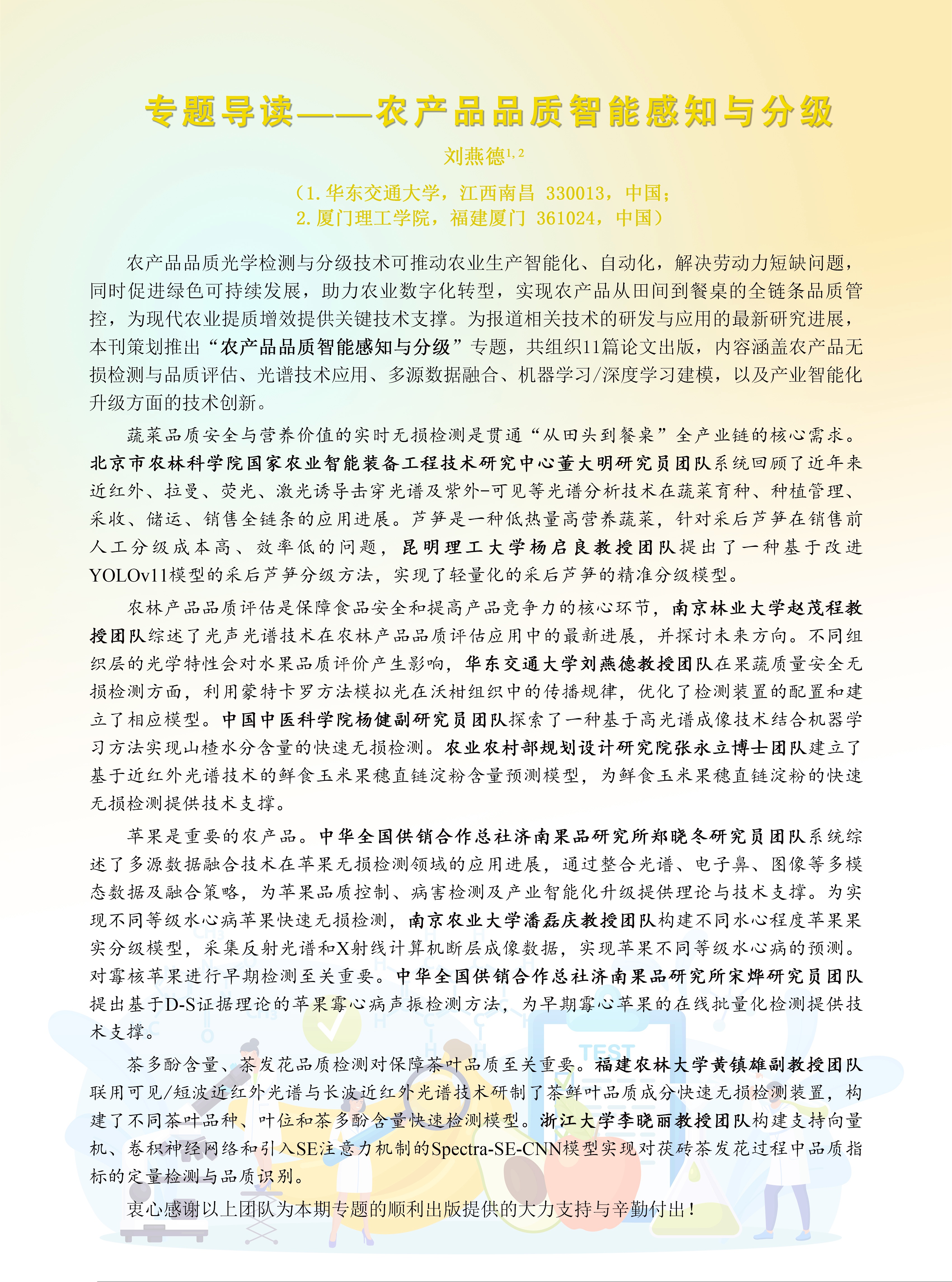 【目的/意义】 霉心病是苹果常见的内部病害,具有较强的传染性。在贮藏早期,霉变症状被限制在果核内部,苹果组织处于亚健康状态,但仍具有商品价值,因此对霉核苹果进行早期检测至关重要。 【方法】 本研究利用声振动无损检测系统采集声振动响应信号,采用对称极坐标变换(Symmetrized Dot Pattern, SDP)、格拉姆角场变换(Gramian Angular Field, GAF)和Stockwell变换(Stockwell Transform, ST),其中GAF分为格拉姆求和场(Gramian Angular Summation Field, GASF)和格拉姆差场(Gramian Angular Difference Field, GADF),以此获得声振多域谱的SDP图、GASF图、GADF图和ST图。利用统一局部二值模式法(Uniform Local Binary Pattern, ULBP)和灰度-梯度共生矩阵法(Gray-Level-Gradient Co-occurrence Matrix, GLGCM)分别从多域可视化图像中提取人工特征,同时设计了基于卷积注意力机制模块和Adam优化器改进的ResNet50特征提取器(Adam-IResNet50)从各域可视化图像中自动提取深度特征,构建最优浅层特征训练分类器多元支持向量机(Multiple Support Vector Machine, MSVM)和最优深层特征训练分类器极限学习机(Extreme Learning Machine, ELM)。将两种分类器初步判别结果转化为独立证据体的基本概率分配,然后基于D-S(Dempster-Shafer, D-S)证据理论中的Dempster合成规则和决策判决规则,获得最终的早期霉心苹果决策判决结果,进而构建声振多域谱浅层特征和深层特征决策层融合模型。 【结果和讨论】 构建的Adam-IResNet50-IPSO-ELM-DS模型对熟知产地3类别苹果多分类的Kappa系数和马修斯相关系数(Matthews Correlation Coefficient, MCC)值略低于90%,F1和总体准确率(Overall Accuracy, OA)值分别达到了93.01%和93.22%,对亚健康果的判别准确率达到了87.37%,对病害果误判率为8.33%。表明该模型对3类别苹果的分类不仅能较好兼顾查准能力和查全能力,还保持较高检测精度。 【结论】 提出的基于D-S证据理论的苹果霉心病声振检测方法可有效完成检测任务,为今后早期霉心苹果的在线批量化检测提供技术支撑。