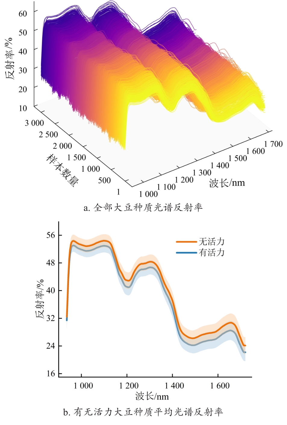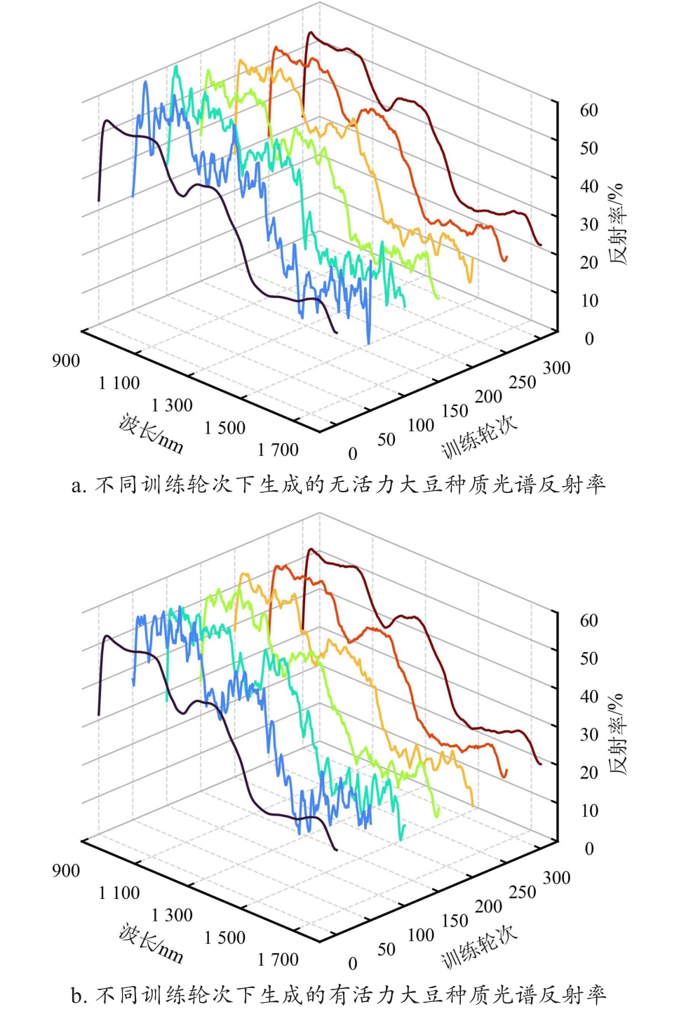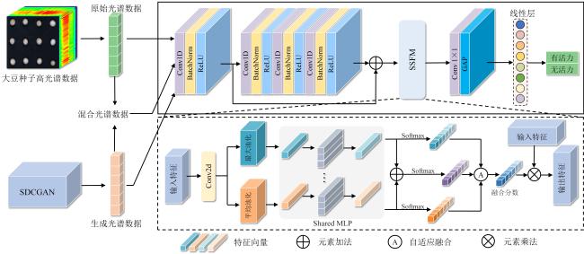 [Objective] Germplasm resources are regarded as the "chips" of high-quality breeding, and evaluating the viability of soybean germplasm is essential for ensuring the secure preservation of genetic resources and promoting the healthy development of the soybean industry. Traditional viability detection methods are time-consuming, labor-intensive, and seed-consuming, highlighting the urgent need for non-destructive, intelligent, and high-throughput detection technologies. Hyperspectral imaging combined with deep learning offers a promising approach for the rapid, non-destructive assessment of soybean germplasm viability. Compared to artificially aged samples, naturally aged samples more accurately reflect the substance changes associated with the decline in germplasm viability. However, the imbalance in the number of viable and non-viable samples limits the generalization performance of viability prediction models. [Methods] In order to address the aforementioned challenges, a semi-supervised deep convolutional generative adversarial network (SDCGAN) was proposed in this research to generate high-quality hyperspectral data with associated viability labels. The SDCGAN framework consisted of three main components: a generator, a discriminator, and a classifier. The generator progressively transformed low-dimensional latent representations into hyperspectral data. This was achieved through four one-dimensional transposed convolutional layers, ensuring the output matched the dimensionality of real spectra. The discriminator adopted an optimization strategy based on the wasserstein distance, replacing the Jensen-Shannon divergence used in traditional GANs, thereby mitigating training instability and gradient vanishing. Additionally, a gradient penalty term was introduced to further stabilize model training. In the classifier, a unilateral margin loss function was employed to penalize only those samples near the decision boundary, effectively avoiding overfitting on well-separated samples and improving training efficiency. Furthermore, a spectral score fusion network (SSFNet) was developed to enable hyperspectral-based detection of soybean seed viability. SSFNet comprised two core modules: a spectral residual network and a spectral score fusion module. The spectral residual network extracted shallow-level features from the hyperspectral data, capturing local patterns within spectral sequences. The spectral score fusion module adaptively reweighted spectral channels to emphasize viability-related features and suppress redundant noise. Finally, the performance of the SDCGAN-generated spectra was evaluated using root mean square error (RMSE), while the viability detection performance of SSFNet was assessed using test accuracy, precision, area under the curve (AUC), and F1-Score. [Results and Discussions] In the performance analysis of SDCGAN, the model progressively learned and captured the key spectral features that distinguished viable and non-viable soybean seeds during the training process. The generated spectra gradually evolved from initial noisy fluctuations to smoother curves that closely resembled real spectra, demonstrating strong nonlinear modeling capability. Compared to other generative adversarial models, SDCGAN achieved the best performance in enhancing viability detection, and its generated data exhibited low error characteristics in RMSE analysis. By applying SDCGAN for data augmentation, three types of datasets were constructed: original spectra, generated spectra, and mixed spectral dataset. When using the multiple scatter correction-savitzky-golay-standardscaler (MSC-SG-SS) preprocessing strategy, SSFNet achieved the highest viability detection accuracies across all three datasets, reaching 89.50%, 90.83%, and 93.33%, respectively. In comparison with other viability detection models, SSFNet consistently outperformed alternative algorithms in all four evaluation metrics across all datasets. Particularly on the mixed dataset, SSFNet demonstrated the best performance, achieving a test accuracy of 93.33%, precision of 95.17%, AUC of 92.58%, and F1-Score of 94.83%. Notably, all models trained on the mixed dataset containing SDCGAN-generated samples achieved better performance than those trained on either original or generated datasets alone. This improvement was likely due to the increased sample diversity and balanced class distribution in the mixed dataset, which provided more comprehensive viability-related features, facilitated model convergence, and reduced overfitting. In transfer experiments, SSFNet also exhibited superior generalization capability compared to four baseline algorithms: support vector machine (SVM ), extreme gradient boosting (XGBoost), one-dimensional convolutional neural network (1D-CNN), and Transformer, achieving the highest classification accuracy of 73.67% on the mixed dataset. [Conclusions] This research constructs an integrated SDCGAN-SSFNet framework for robust viability detection of naturally aged soybean germplasm under imbalanced sample conditions. The SDCGAN component accurately learns the underlying distributional characteristics of real hyperspectral data from soybean seeds and generates realistic synthetic samples, effectively augmenting the spectral data of non-viable seeds and improving data diversity. Meanwhile, SSFNet explores inter-band spectral correlations to adaptively enhance features that are highly relevant to viability classification while effectively suppressing redundant and noisy information. This integrated approach enables rapid, nondestructive, and high-precision detection of soybean seed viability under challenging sample imbalance scenarios, providing an efficient and reliable method for seed quality assessment and agricultural decision-making.