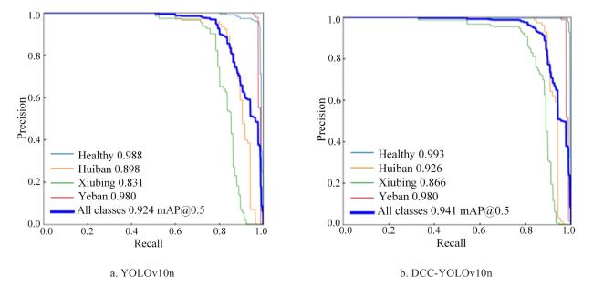 表3 基于DCC-YOLOv10n的玉米叶片病害检测消融实验结果Table 3 The ablation experiment results of maize leaf disease detection based on DCC-YOLOv10n |