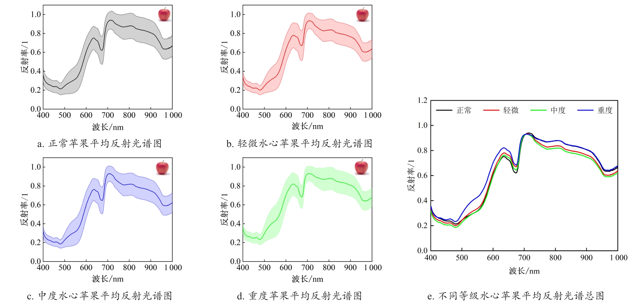 2.4 不同水心程度苹果果实成像光谱分析