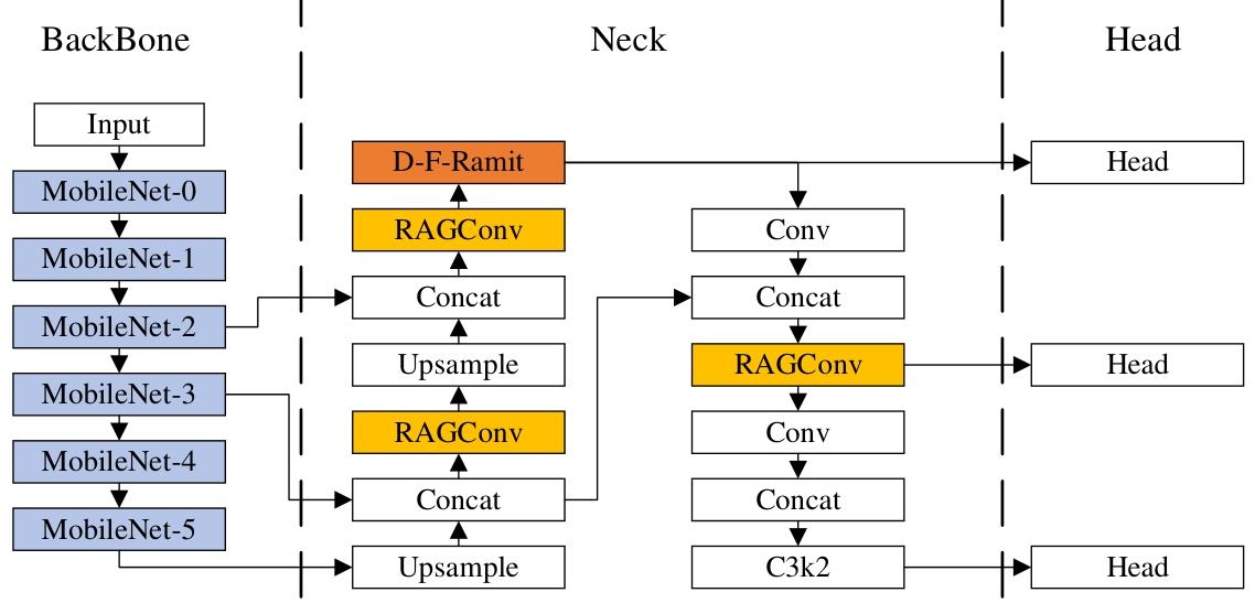 | 名称 | 改进的MobileNetV4(含双3×3) | D-F-Ramit | RAGConv | mAP%0.5 | Params/M | GFLOPs /G | FPS(帧/s) |