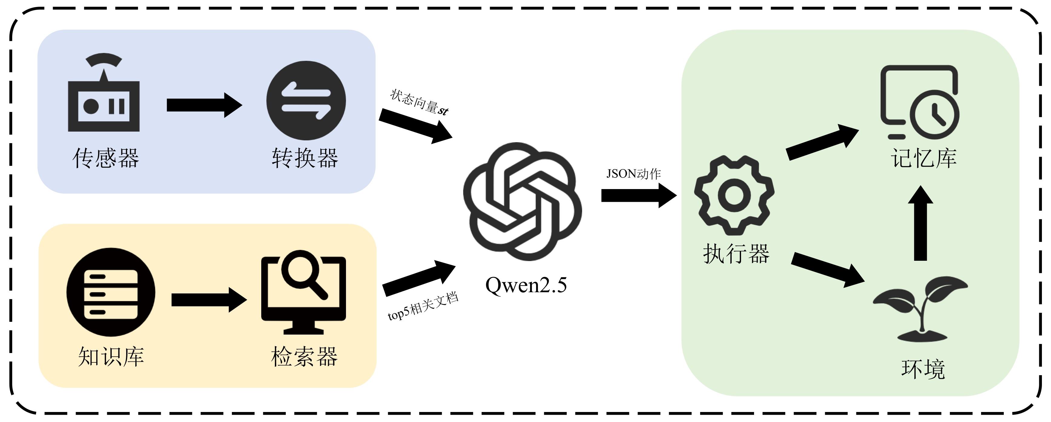 | LLM | 解析环境信息并生成JSON格式工具调用 | 经过预训练和后训练的大语言模型 |