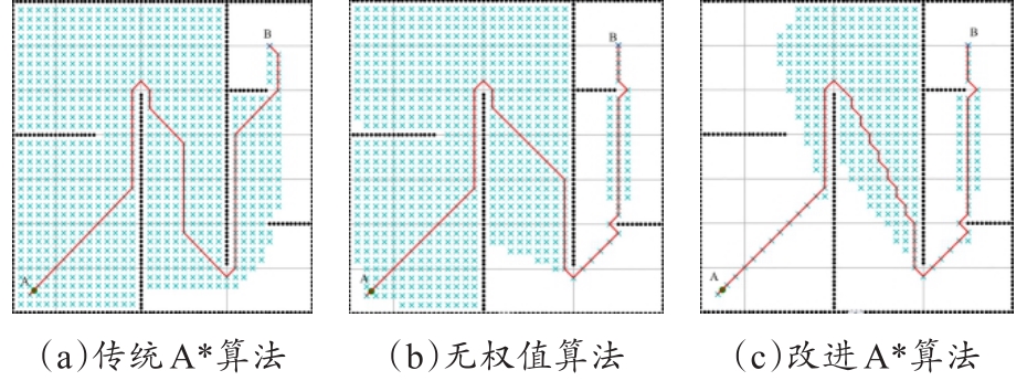 [Objective] A key challenge for the harmless treatment center of sick and dead animal is to prevent secondary environmental pollution, especially during the process of transporting the animals from cold storage to intelligent treatment facilities. In order to solve this problem and achieve the intelligent equipment process of transporting sick and dead animal from storage cold storage to harmless treatment equipment in the harmless treatment center, it is necessary to conduct in-depth research on the key technical problems of path planning and autonomous walking of transport robots. [Methods] A * algorithm is mainly adopted for the robot path planning algorithm for indoor environments, but traditional A * algorithms have some problems, such as having many inflection points, poor smoothness, long calculation time, and many traversal nodes. In order to solve these problems, a path planning method for the harmless treatment of diseased and dead animal using transport robots based on the improved A algorithm was constructed, as well as a motion control method based on fuzzy proportional integral differential (PID). The Manhattan distance method was used to replace the heuristic function of the traditional A * algorithm, improving the efficiency of calculating the distance between the starting and ending points in the path planning process. Referring to the actual location of the harmless treatment site for sick and dead animal, vector cross product calculation was performed based on the vector from the starting point to the target point and the vector from the current position to the endpoint target. Additional values were added and dynamic adjustments were implemented, thereby changing the value of the heuristic function. In order to further improve the efficiency of path planning and reduce the search for nodes in the planning process, a method of adding function weights to the heuristic function was studied based on the actual situation on site, to change the weights according to different paths. When the current location node was relatively open, the search efficiency was improved by increasing the weight. When encountering situations such as corners, the weight was reduced to improve the credibility of the path. By improving the heuristic function, a driving path from the starting point to the endpoint was quickly obtained, but the resulting path was not smooth enough. Meanwhile, during the tracking process, the robot needs to accelerate and decelerate frequently to adapt to the path, resulting in energy loss. Therefore, according to the different inflection points and control points of the path, different orders of Bessel functions were introduced to smooth the planning process for the path, in order to achieve practical application results. By analyzing the kinematics of robot, the differential motion method of the track type was clarified. On this basis, a walking control algorithm for the robot based on fuzzy PID control was studied and proposed. Based on the actual operation status of the robot, the fuzzy rule conditions were recorded into a fuzzy control rule table, achieving online identification of the characteristic parameters of the robot and adjusting the angular velocity deviation of robot. When the robot controller received a fuzzy PID control signal, the angular velocity output from the control signal was converted into a motor rotation signal, which changed the motor speed on both sides of the robot to achieve differential control and adjust the steering of the robot. [Results and Discussions] Simulation experiments were conducted using the constructed environmental map obtained, verifying the effectiveness of the path planning method for the harmless treatment of sick and dead animal using the improved A algorithm. The comparative experiments between traditional A * algorithm and improved algorithm were conducted. The experimental results showed that the average traversal nodes of the improved A * algorithm decreased from 3 067 to 1 968, and the average time of the algorithm decreased from 20.34 s to 7.26 s. Through on-site experiments, the effectiveness and reliability of the algorithm were further verified. Different colors were used to identify the planned paths, and optimization comparison experiments were conducted on large angle inflection points, U-shaped inflection points, and continuous inflection points in the paths, verifying the optimization effect of the Bessel function on path smoothness. The experimental results showed that the path optimized by the Bessel function was smoother and more suitable for the walking of robot in practical scenarios. Fuzzy PID path tracking experiment results showed that the loading truck can stay close to the original route during both straight and turning driving, demonstrating the good effect of fuzzy PID on path tracking. Further experiments were conducted on the harmless treatment center to verify the effectiveness and practical application of the improved algorithm. Based on the path planning algorithm, the driving path of robot was quickly planned, and the fuzzy PID control algorithm was combined to accurately output the angular velocity, driving the robot to move. The transport robots quickly realized the planning of the transportation path, and during the driving process, could always be close to the established path, and the deviation error was maintained within a controllable range. [Conclusions] A path planning method for the harmless treatment of sick and dead animal using an transport robots based on an improved A * algorithm combined with a fuzzy PID motion control was proposed in this study. This method could effectively shorten the path planning time, reduce traversal nodes, and improve the efficiency and smoothness of path planning.