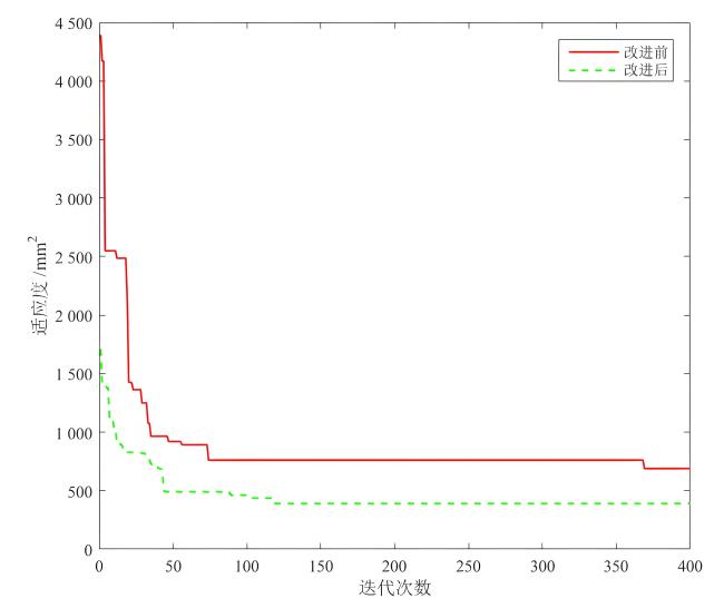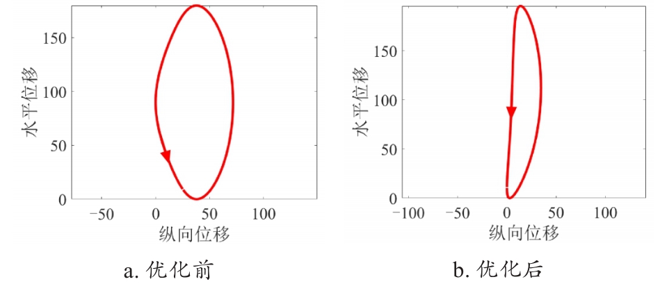 表3 粒子群算法优化采收轨迹前后机构参数Table 3 Particle swarm optimization algorithm for optimizing mechanism parameters before and after picking trajectory |