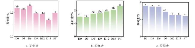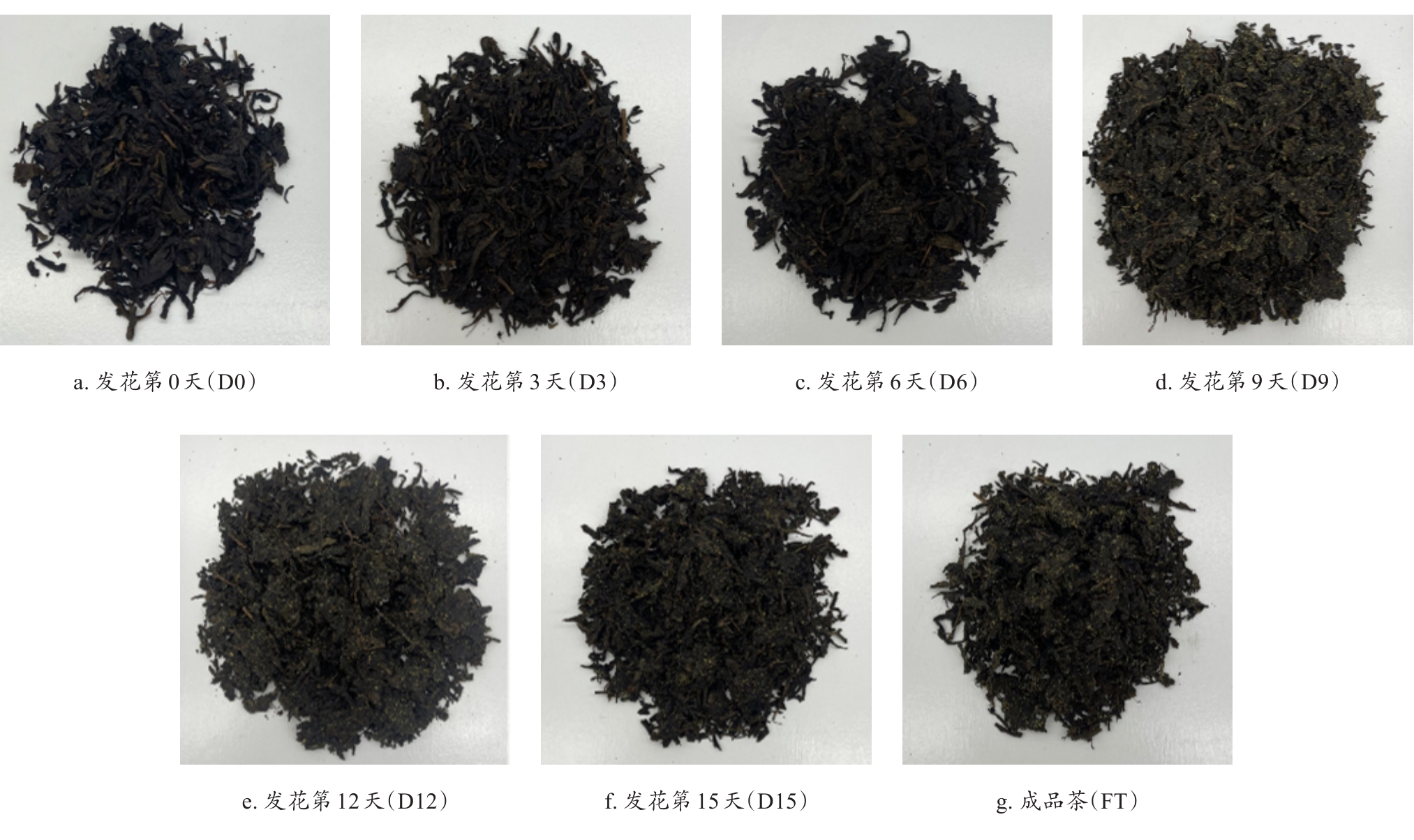 表1 茯砖茶发花过程中的含水率、游离氨基酸、茶多酚和茶三素的定量预测结果Table 1 Quantitative prediction of moisture, free amino acids, tea polyphenols and (TF+TR)/TB of Fu brick tea at different stages of fungal fermentation |