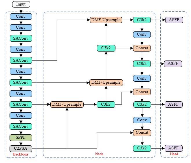 [8]设计了多尺度特征融合网络(Multi-scale features inception Neck, MFI Neck),融入可变形注意力跨阶段部分特征融合(Cross-Stage Partial with 2 convolutions Feature fusion - Deformable attention, C2f-DA)结构与降采样(Adaptive Downsampling, ADown)模块,有效识别复杂环境下花生的相似病害。侯文慧等