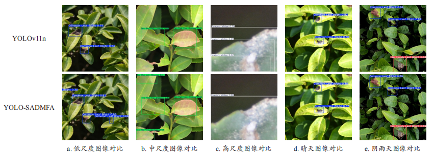 [14]基于YOLOv8n(You Only Look Once Version 8n)架构,结合高效多尺度注意力模块(Efficient Multi-scale Attention, EMA)与双向特征金字塔网络(Bidirectional Feature Pyramid Network, BiFPN)实现高效多尺度特征融合。这几种轻量化病害检测方法可满足边缘检测设备的部署,但在多尺度目标识别尤其是复杂背景的情况下准确率不尽如人意。上述方法与模型识别在复杂背景下识别多类别病斑时往往只能识别病斑占图片面积10%~30%的较窄范围的尺度,很难胜任茶田巡检时所面临的复杂野外环境下边缘计算设备部署时多尺度、多类别的茶叶病害检测。