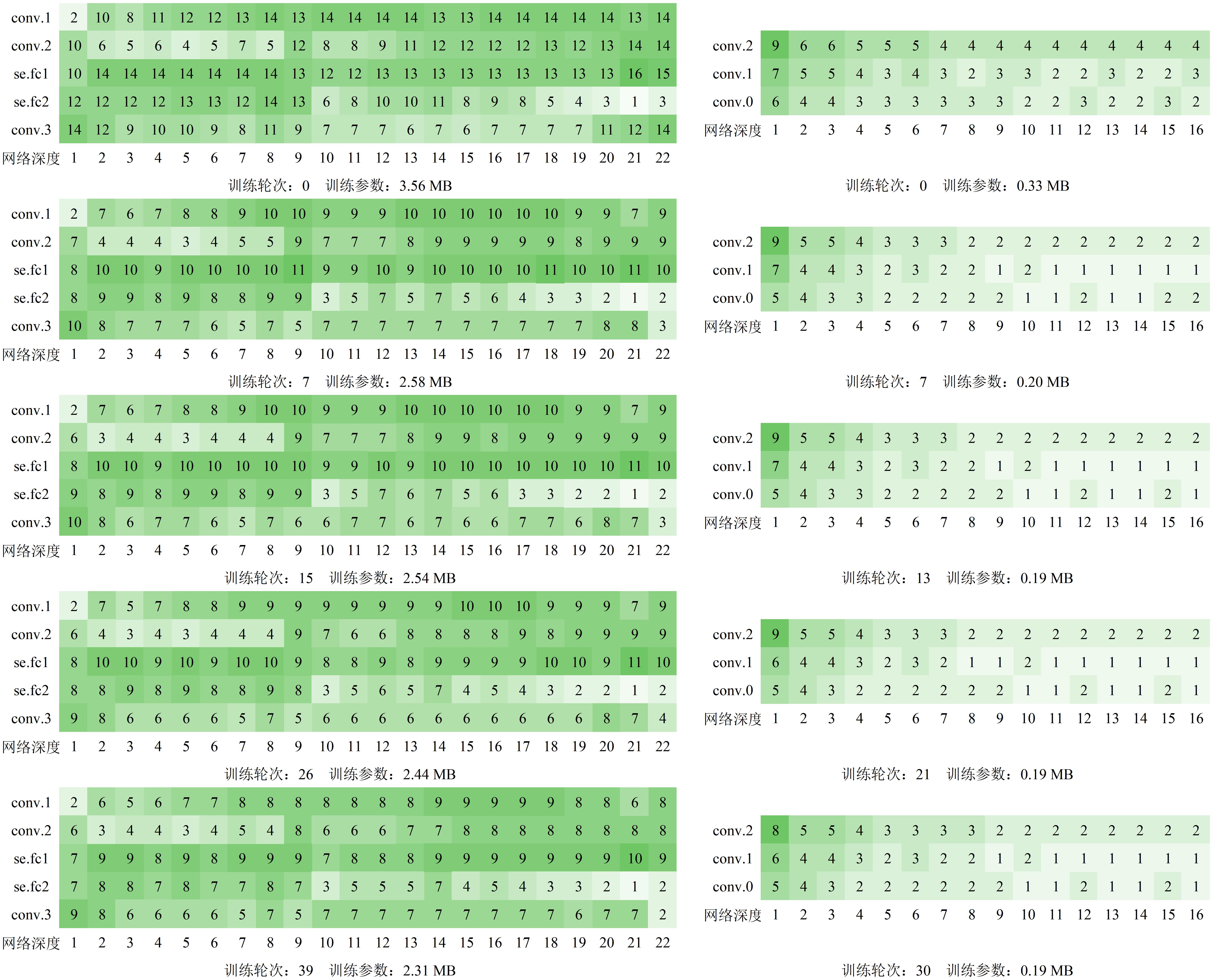 表2 AlexNet、MobileNetV2、RegNetY和ConvNeXt模型应用RRA策略在各数据集微调过程中的训练参数大小对比Table 2 Comparison of trainable parameter sizes during fine-tuning of AlexNet, MobileNetV2, RegNetY and ConvNeXt models with the RRA strategy on various datasets |