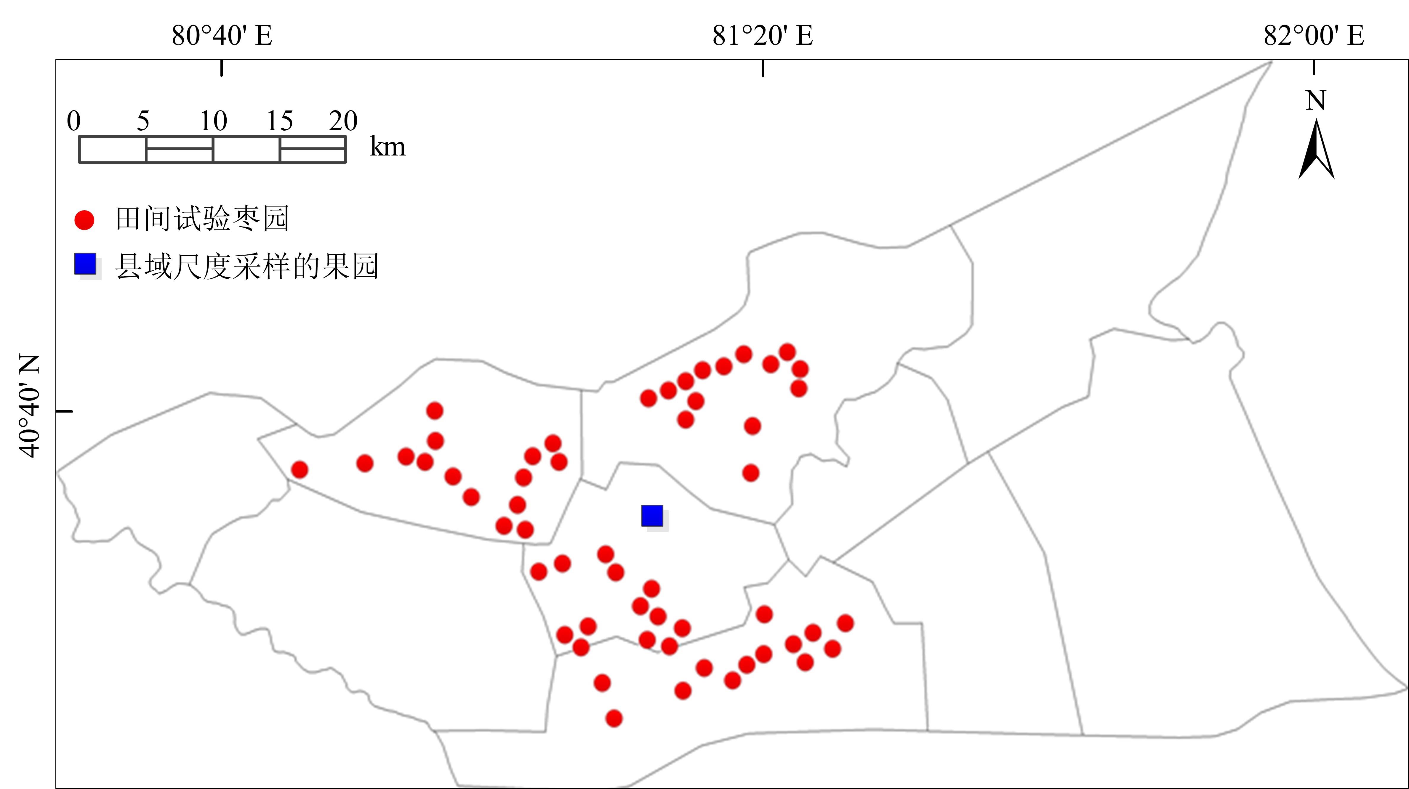 | Fig. 1 Distribution of experimental and sampled jujube gardens |