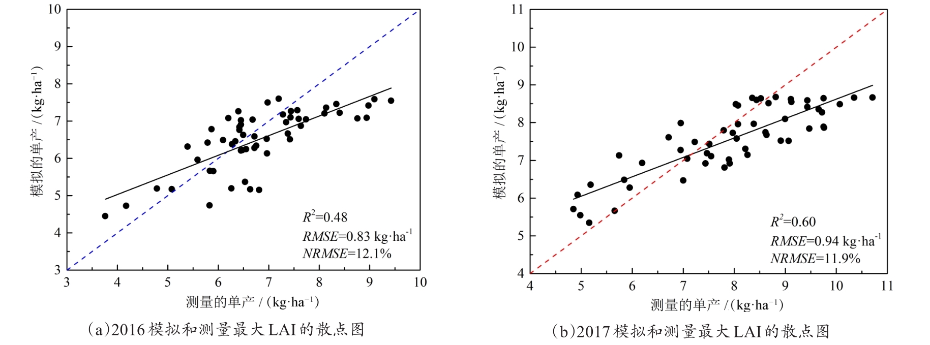 | Fig.4 Yield simulation results at the county scale in 2016 and 2017 |