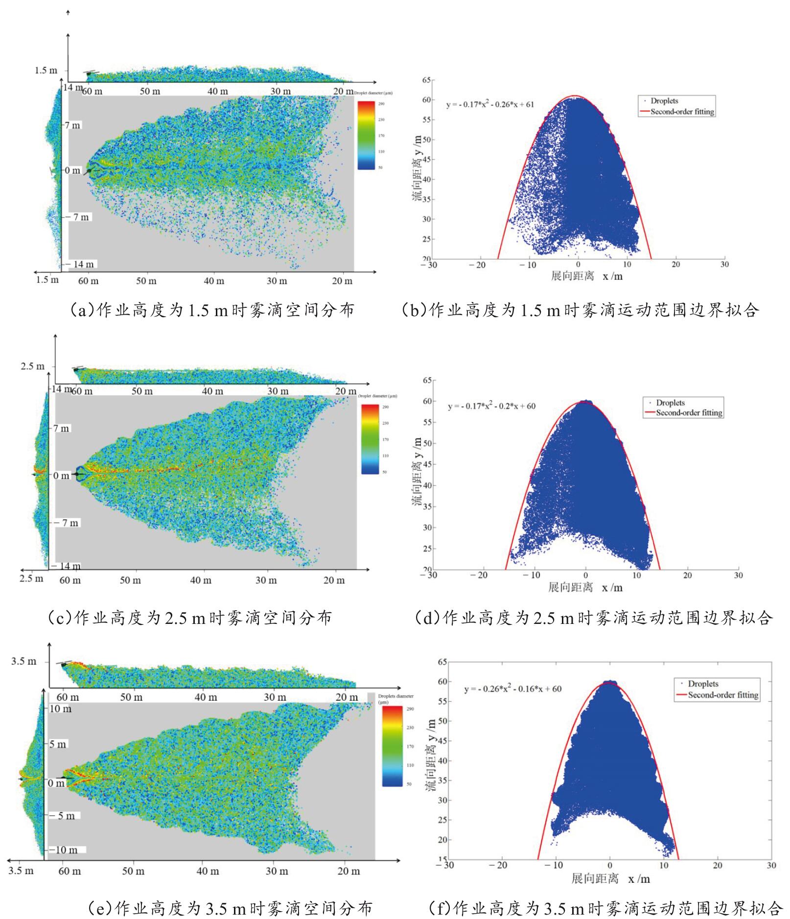 | Fig. 5 Droplet spatial distributions of UAV spraying for different flight heights based on LBM simulation |