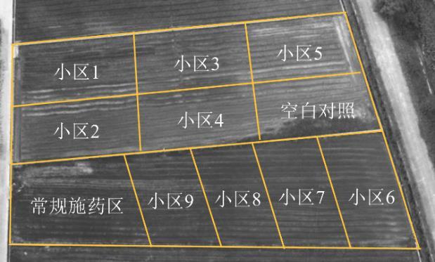 (1)施药机型。采用T16植保无人机(深圳市大疆创新科技有限公司)。其最大载药量为16 L,喷头(8个)型号为XR11001VS,工作流量最高可达3.6 L/min [20]。