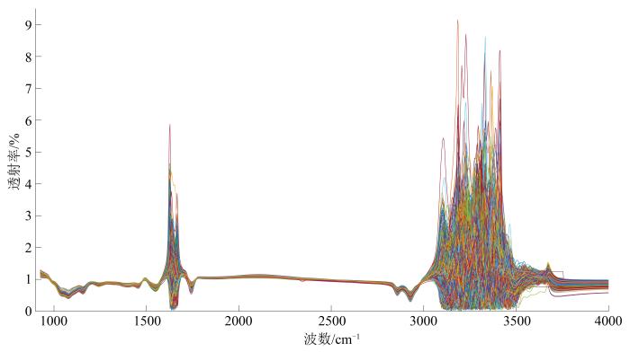 研究采用的3216份牛乳样本均来源于河北省9个牧场的荷斯坦牛。奶牛饲养于平均环境温度为10~29 ℃、相对湿度为45%~78%的可连续取水的牛棚。2019年11月~2020年10月(不包括2月)期间,从晨乳中收集样本。每个月采集一次样本,当天上午5:30开始采集,上午采完。使用全自动转盘挤奶设备逐头精确采集每头奶牛40 mL的牛乳,然后将牛乳放入从奶牛群体改良(Dairy Herd Improvement,DHI)检测实验室获得的全新特定采样瓶中,并依次编号。共采集3216份牛乳样本。为防止牛乳变质,在每个采样瓶中加入了专用防腐剂布罗波尔3.2~3.4 μL后,立即放入冰箱保存(4 ℃),并于第二天进行光谱采集。