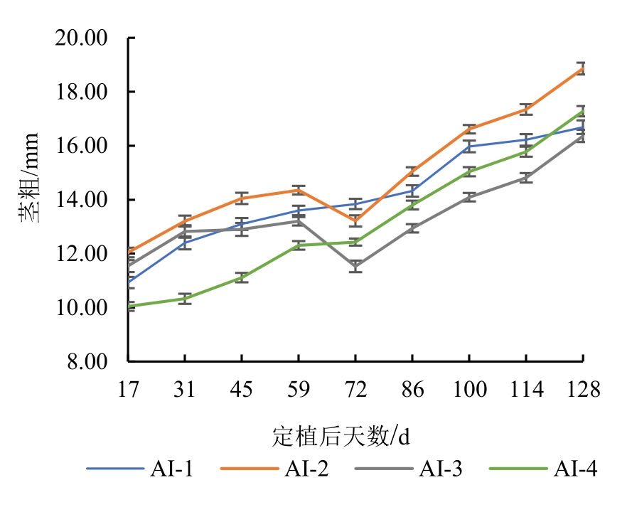 | Fig. 1 Dynamic changes of the stem diameter of strawberry after field planting |