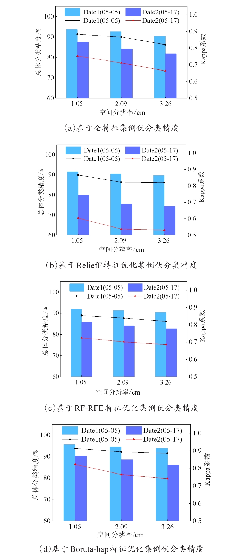 | Fig. 7 Comparison of lodging classification results of each feature set during flight dates |